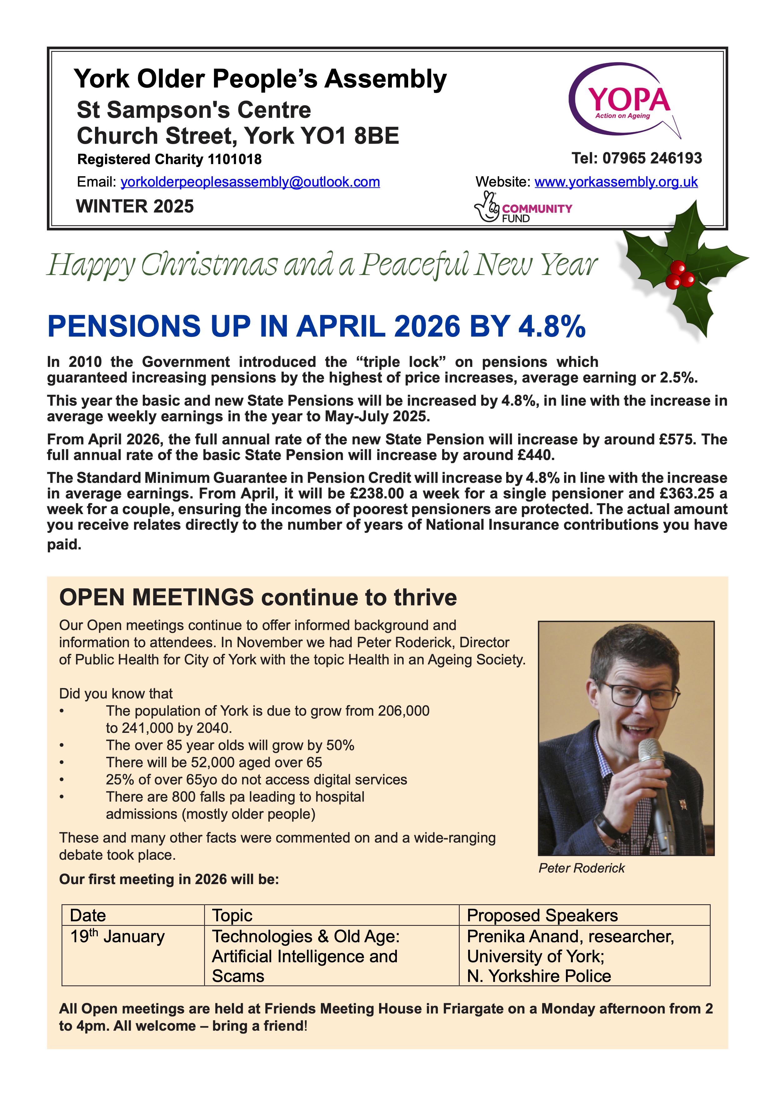 Welcome to the website for the York Older People’s Assembly (YOPA)