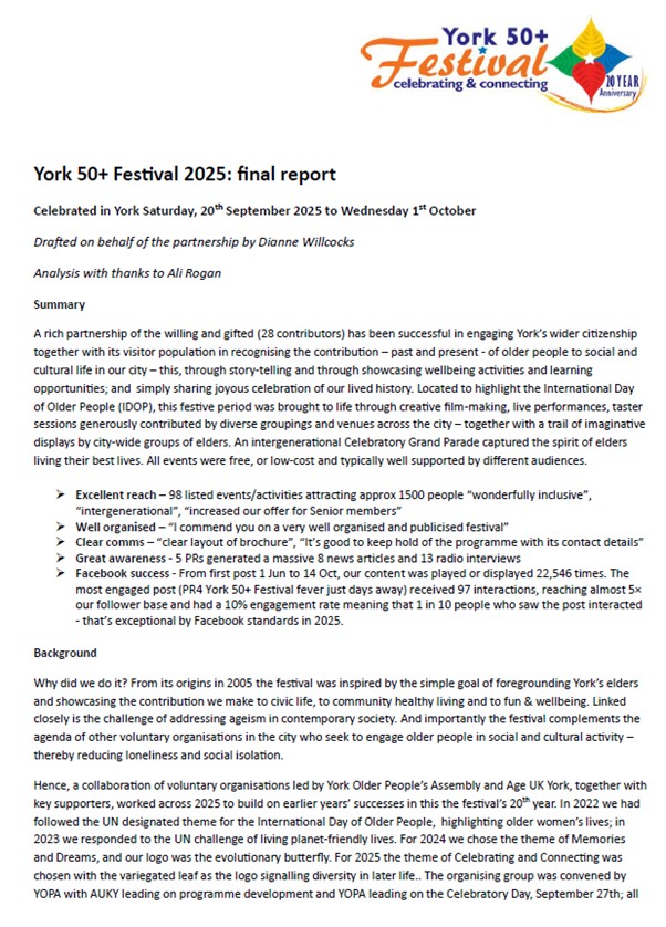 Celebrating and Connecting: A film for the York 50+ Festival and the United Nations International Day of Older People 2025