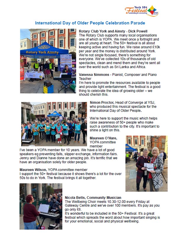 With a successful 20 year track record the 50+ Festival is now firmly on the York calendar for citizens and visitors to enjoy.