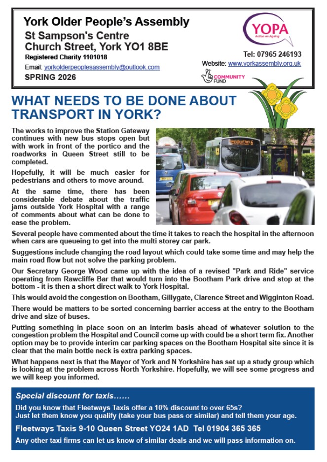 York Older People’s Assembly, St Sampson’s Centre, Church Street, YORK YO1 8BE